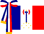 The Dictionary of Vexillology, at the “Flags of the World” website, defines a flag cravat as “a decorative scarf, usually in national or livery colours and often richly decorated, generally tied with a bow to the staff below the finial, normally (but by no means exclusively) used with military flags and sometimes displayed with a cockade.” It gives this illustration (of the French presidential flag of Marshal Pétain, used 1940-43). ↩